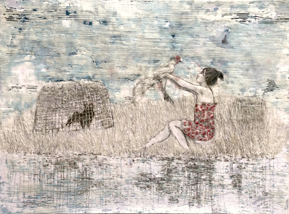 Asien 4, Paraffin und Acryl auf Papier, 60 x 80 cm