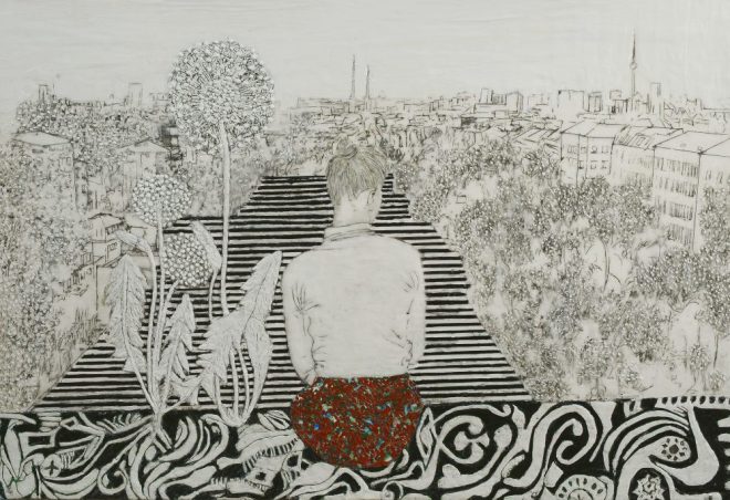 Previous ImageNext Image Wie wir leben wollen 5 Wie wir leben wollen 5, Paraffin und Acryl auf Pappe, 70 x 100 cm