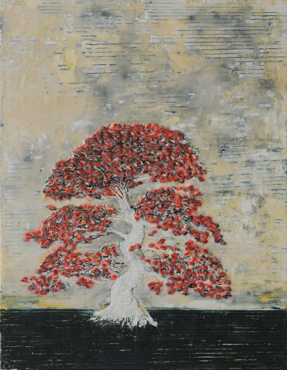 Bäume 1, Paraffin und Acryl auf Pappe, 40 x 30 cm
