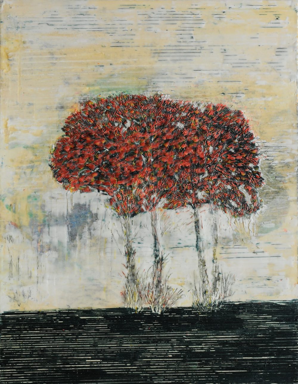 Bäume 2, Paraffin und Acryl auf Pappe, 40 x 30 cm