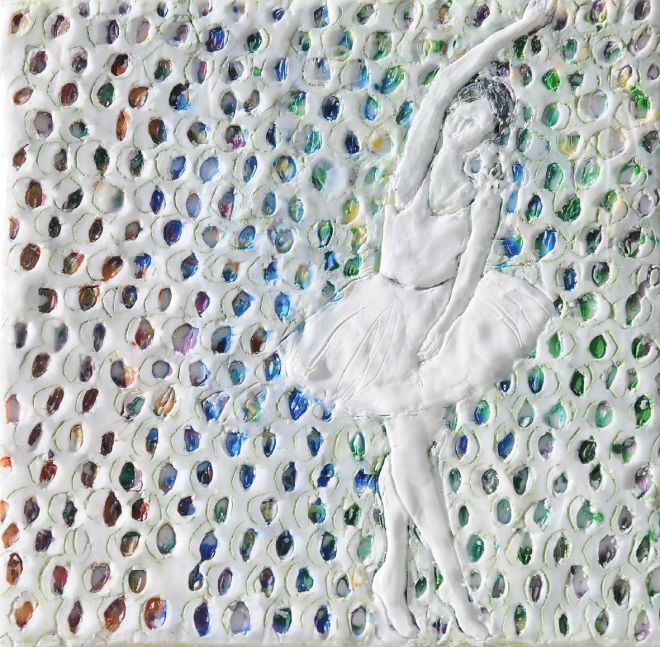 Ballettänzerin 3, Paraffin und Öl auf Nessel, 20 x 20 cm