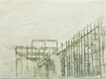 Baustelle, Paraffin und Acryl auf Papier, 30 x 40 cm