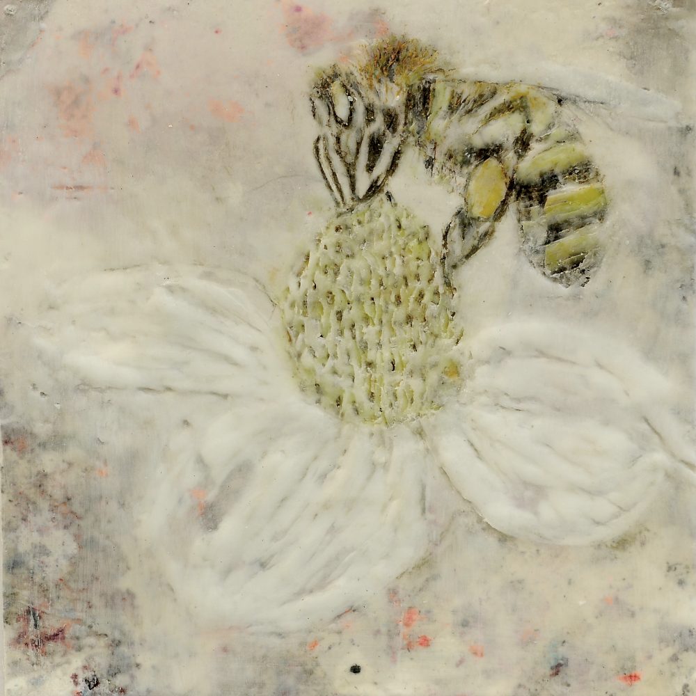 Previous ImageNext Image Biene auf Blume 6 Biene auf Blume 6, Paraffin und Acryl auf Papier, 20 x 20 cm