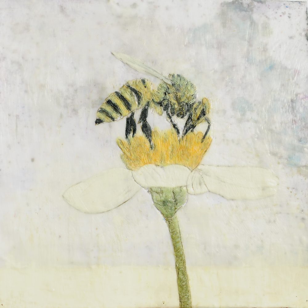 Previous ImageNext Image Biene auf Blume 7 Biene auf Blume 7, Paraffin und Acryl auf Papier, 40 x 40 cm