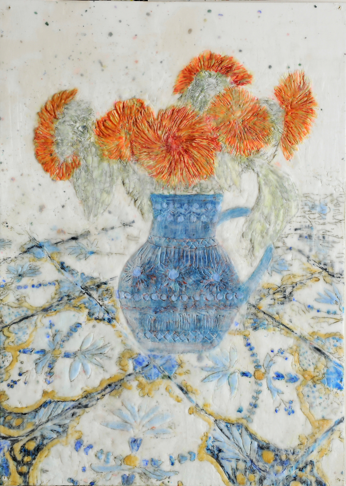 Blumenvase, Paraffin und Acryl auf Pappe, 50 x 70 cm