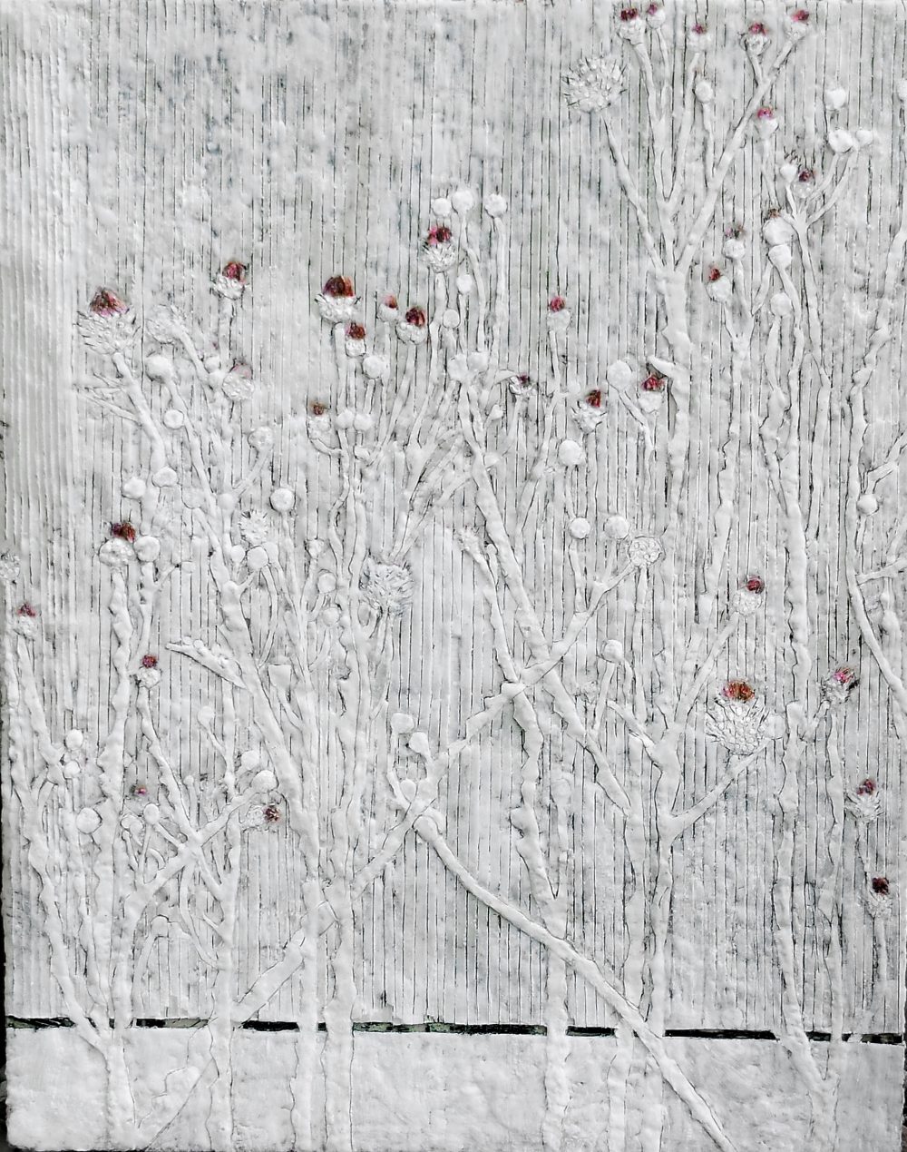 Disteln 1, Paraffin und Acryl auf Holz, 90 x 70 cm