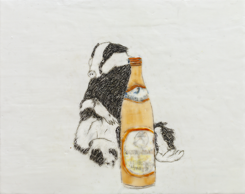 Waschbär, Paraffin und Acryl auf Nessel, 30 x 40 cm