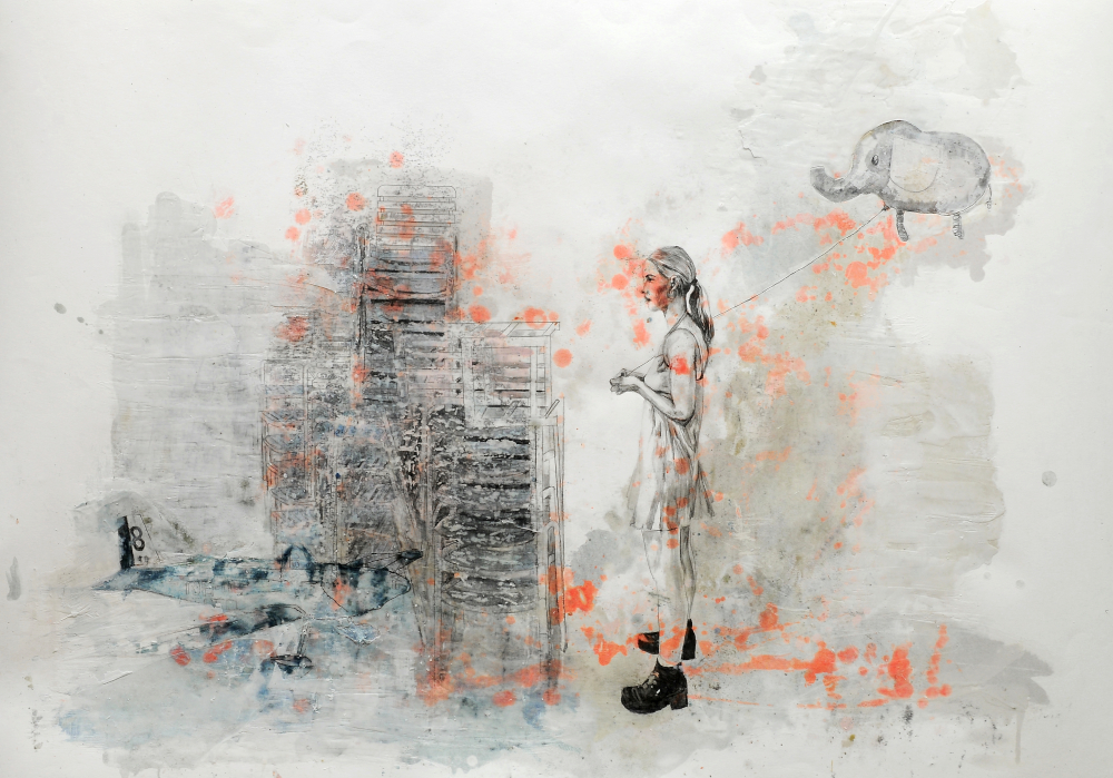 Previous ImageNext Image Elefant an der Leine Elefant an der Leine, Bleistift und Paraffin auf Papier, 70 x 100 cm