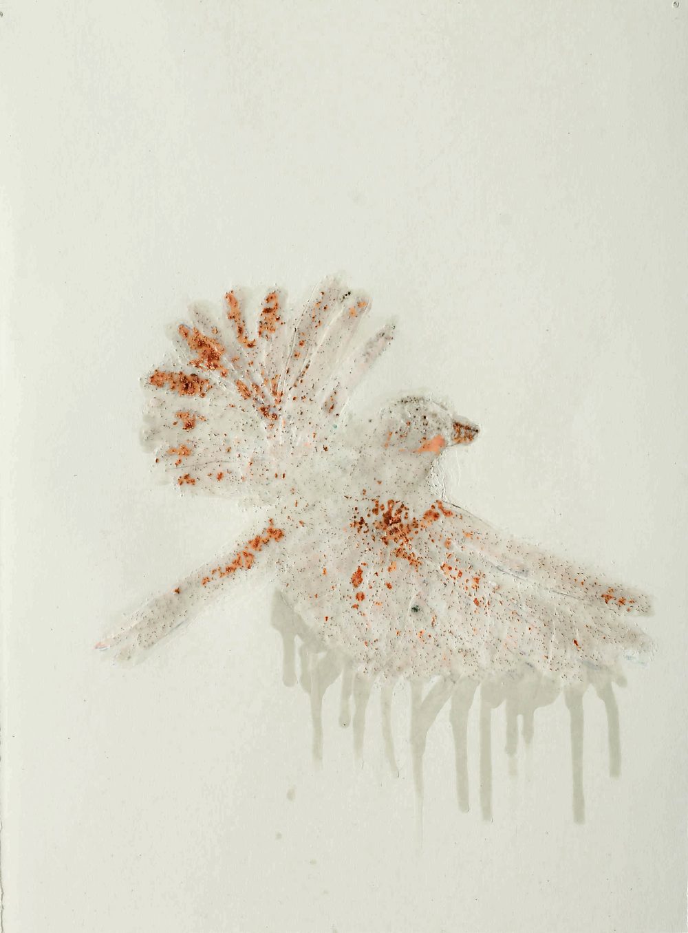 Flugversuch 2, Paraffin und Acryl auf Papier, 30 x 20 cm