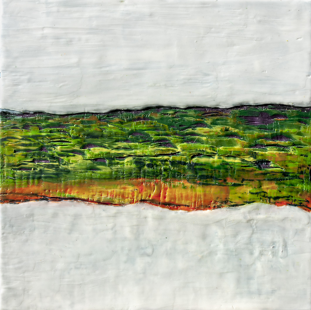 Previous ImageNext Image Havelland Landschaft 4 Havelland | Landschaft 4, Paraffin und Acryl auf MDF, 35 x 35 cm