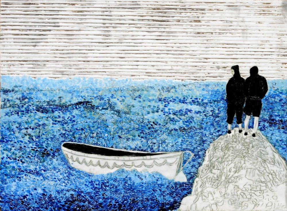 schwere See 2, Paraffin und Acryl auf Pappe, 70 x 99 cm