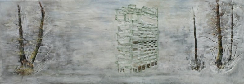 Nebelungen, Paraffin und Acryl auf Leinwand, 35 x 100 cm