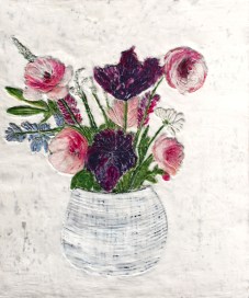 Pfingstrosen, Paraffin und Acryl auf Pappe, 61,5 x 52 cm