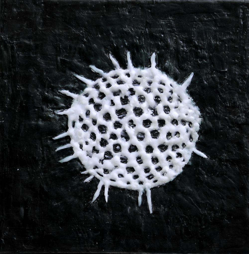 Quallen 1, Paraffin und Acryl auf Nessel, 20 x 20 cm
