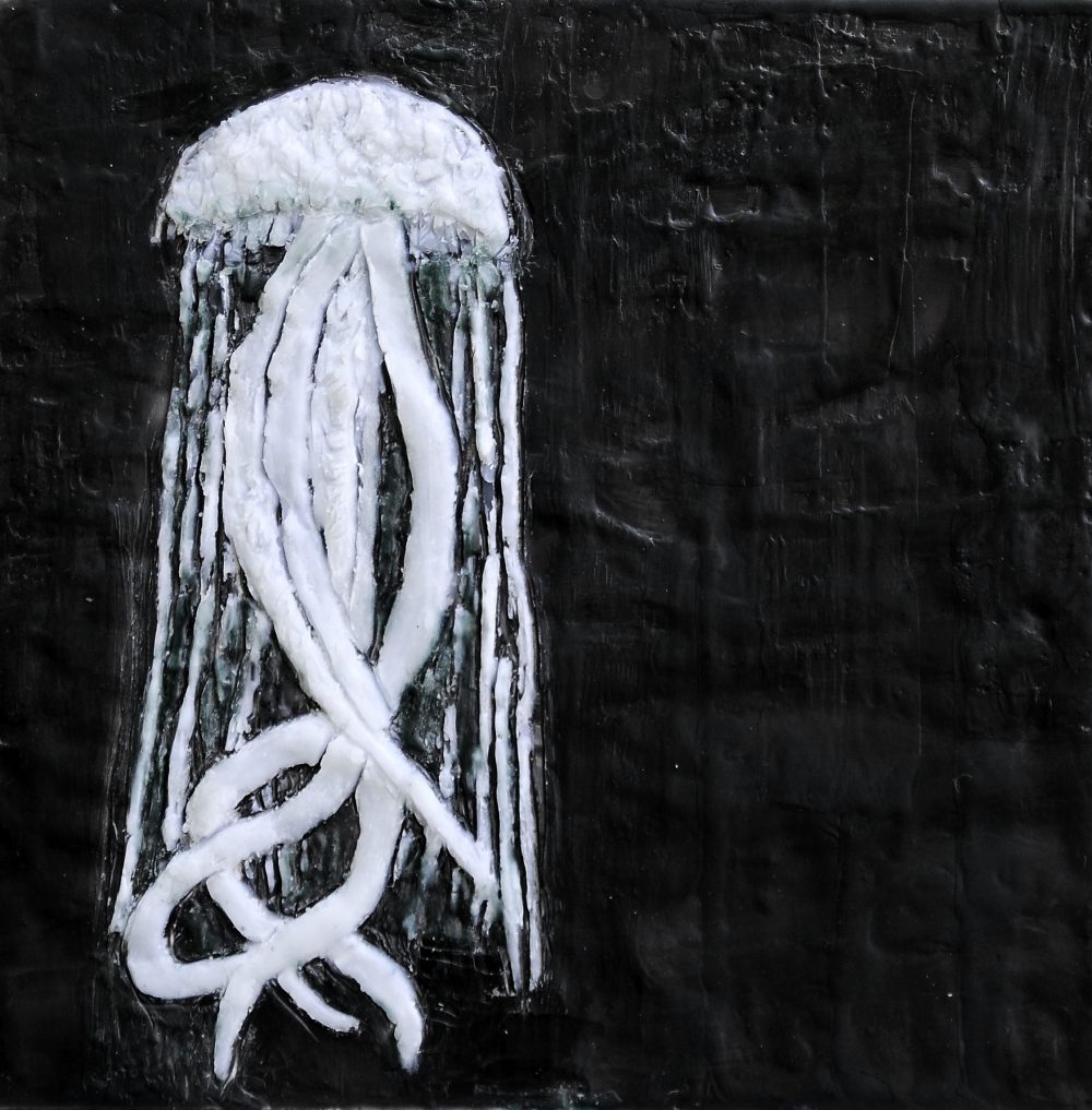 Quallen 2, Paraffin und Acryl auf Nessel, 20 x 20 cm