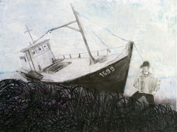 Schiffbruch 2, Bleistift und Paraffin auf Papier, 60 x 80 cm