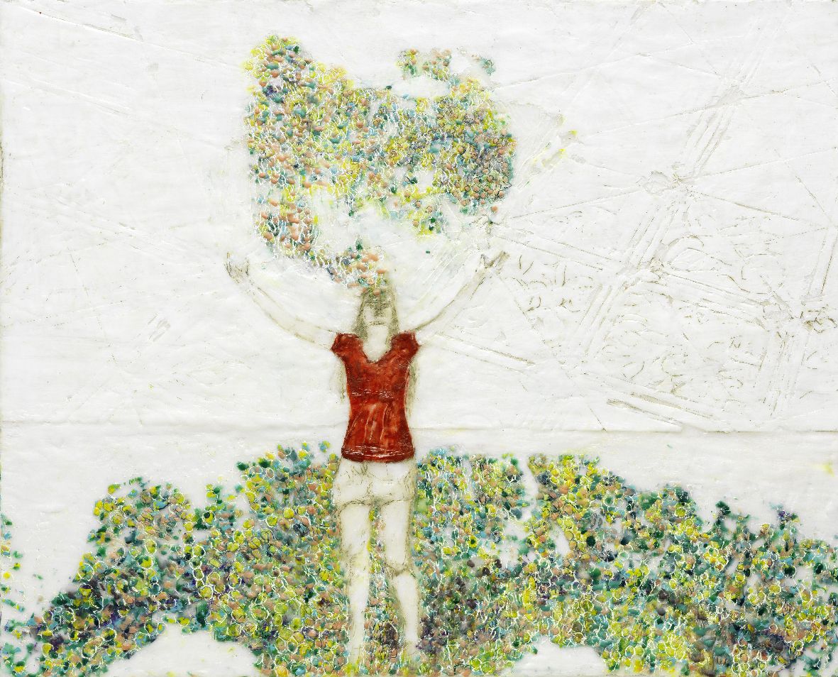 Spieltrieb 1, Paraffin und Öl auf Nessel, 30 x 40 cm