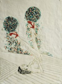 Spieltrieb 7, Paraffin und Öl auf Papier, 38 x 28 cm