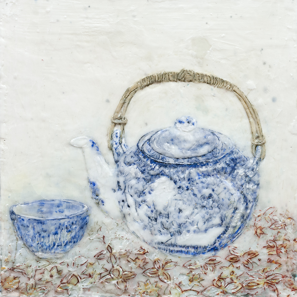 Previous ImageNext Image Stilleben Teekanne 1 Stilleben Teekanne 1, Paraffin und Acryl auf Papier, 40 x 40 cm