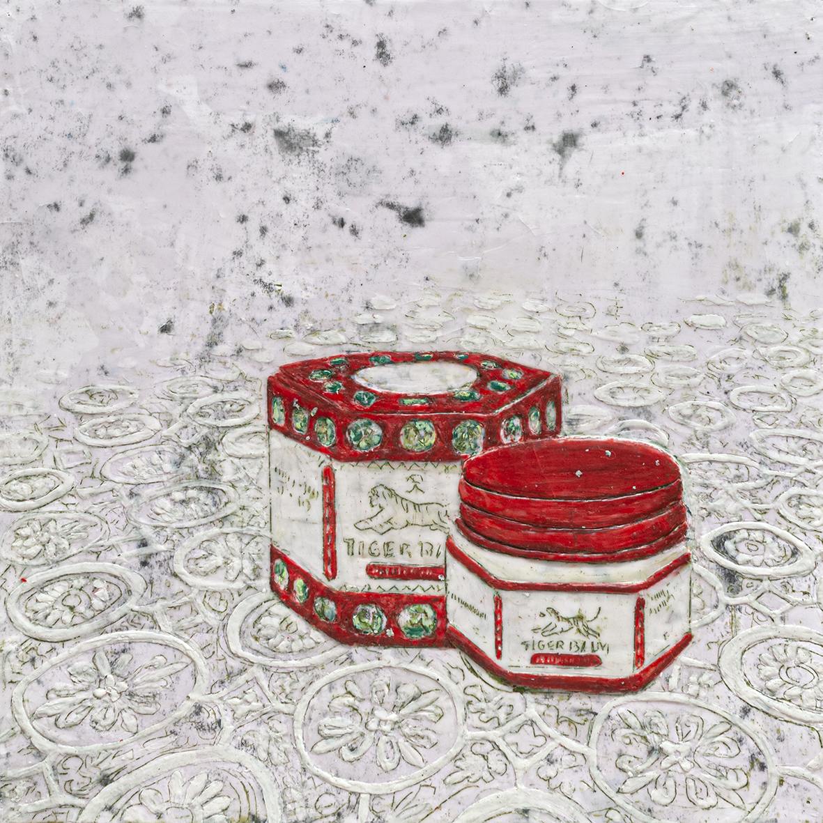 Tigerbalsam, Paraffin und Acryl auf Papier, 40 x 40 cm