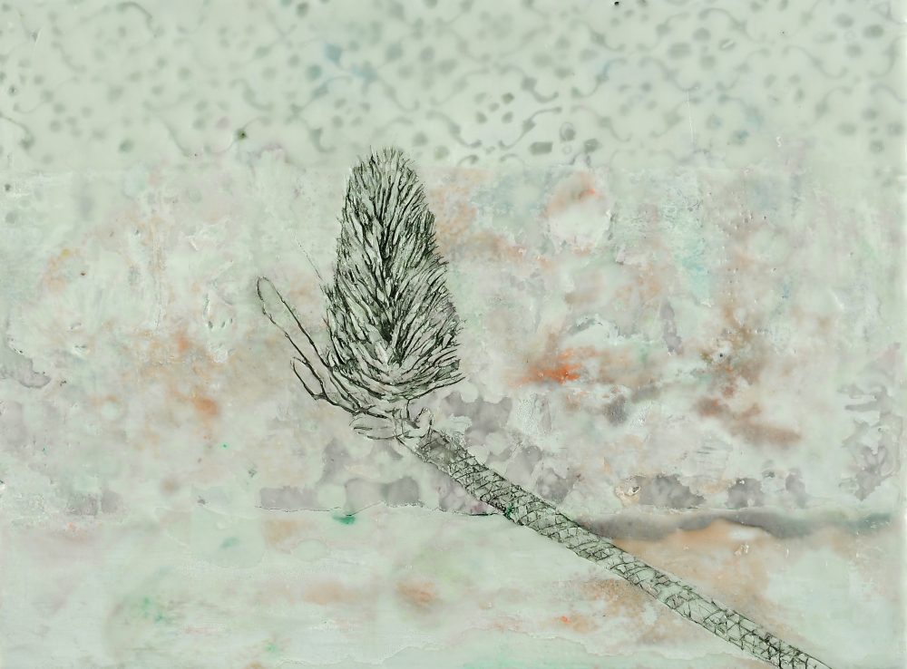 Im Garten 4, Paraffin und Acryl auf Nessel, 30 x 40 cm