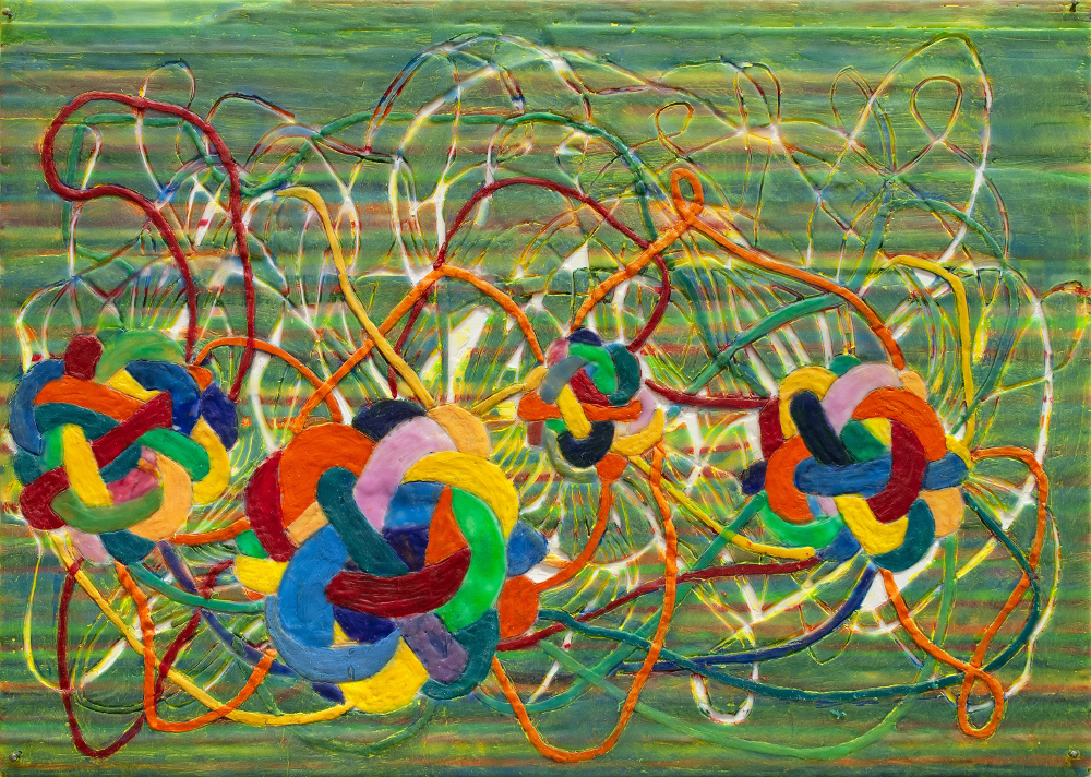 verknotet, Paraffin und Acryl auf Pappe, 50 x 70 cm
