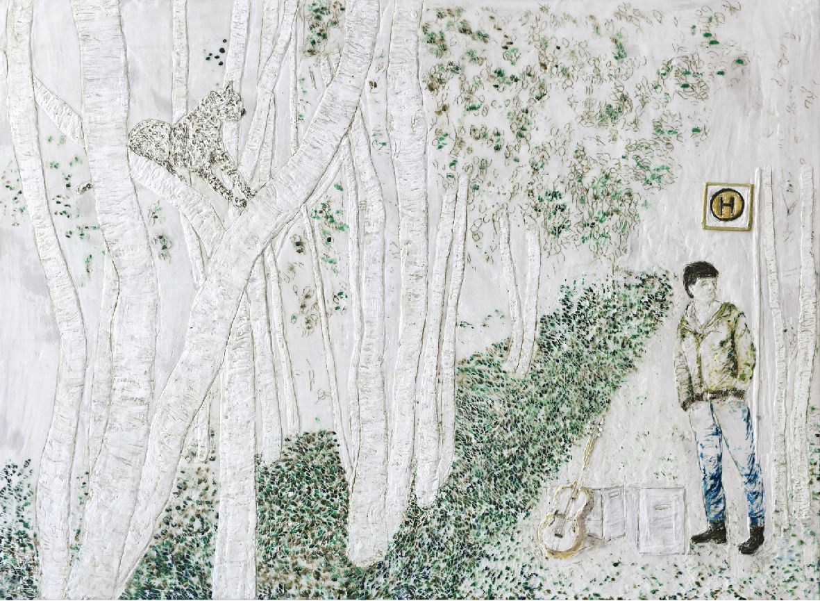 Warten, Paraffin und Öl auf Papier, 65 x 90 cm