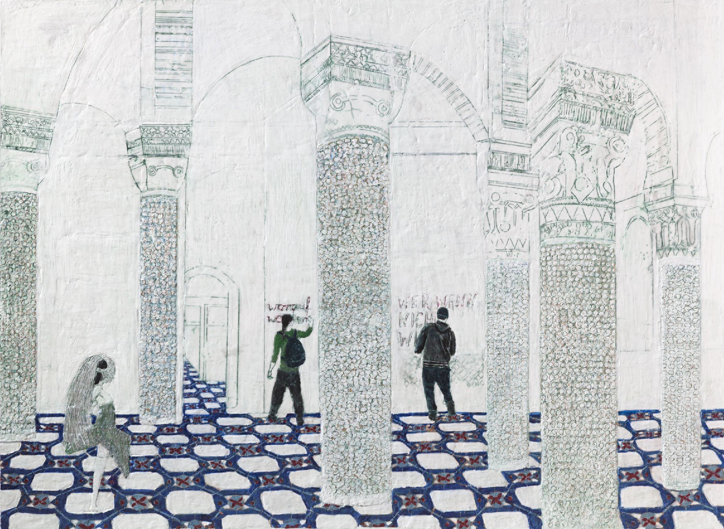 Previous ImageNext Image we came we c0me we will come we came we come we will come, Paraffin und Öl auf Papier, 110 x 150 cm description
