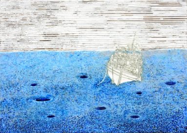 schwere See 1, Paraffin und Acryl auf Pappe, 90 x 140 cm