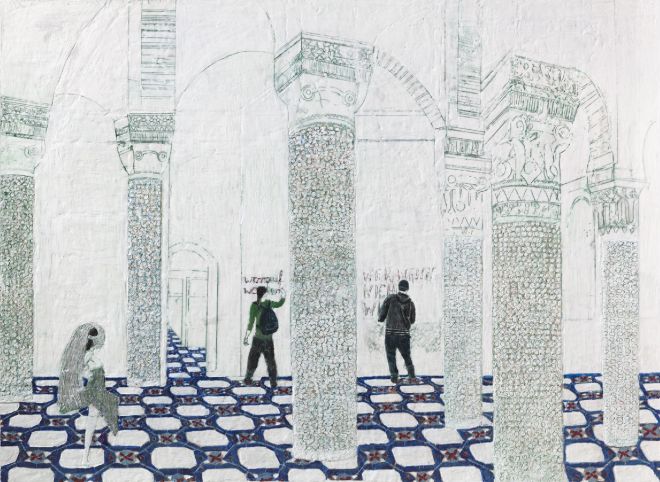 we came we come we will come, Paraffin und Öl auf Papier, 110 x 150 cm