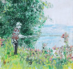 Angler 2, Paraffin und Öl auf Papier, 21,5 x 21,5 cm