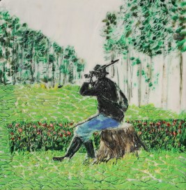 Jäger 6, Paraffin und Öl auf Papier, 21,5 x 21,5 cm