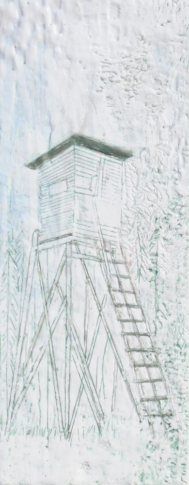 Hochsitz 1, Paraffin und Öl auf Nessel, 50 x 20 cm