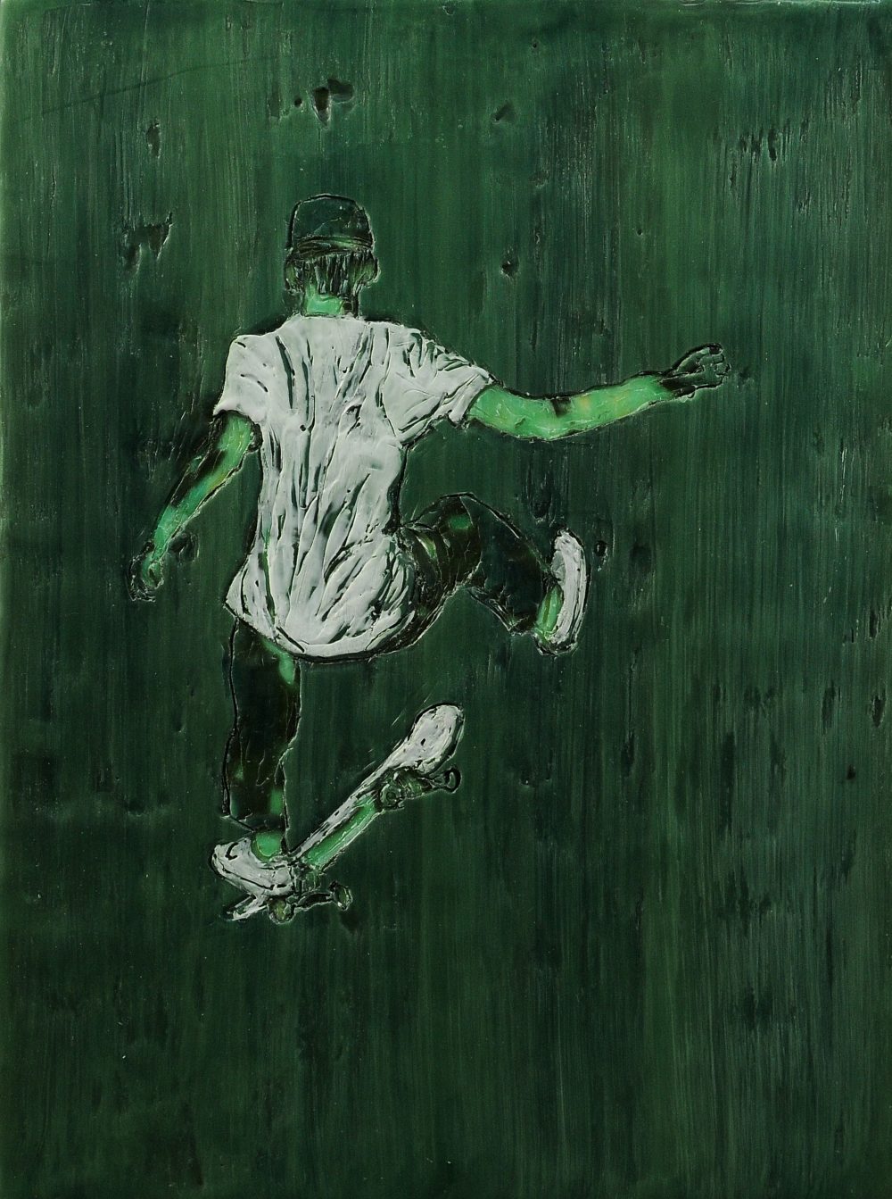 Knoten lösen 1, Paraffin und Acryl auf Nessel, 40 x 30 cm