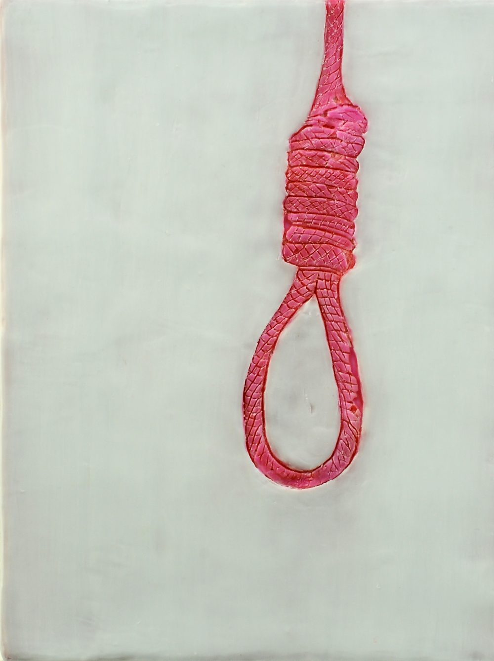 Knoten lösen 2, Paraffin und Öl auf Nessel, 40 x 30 cm