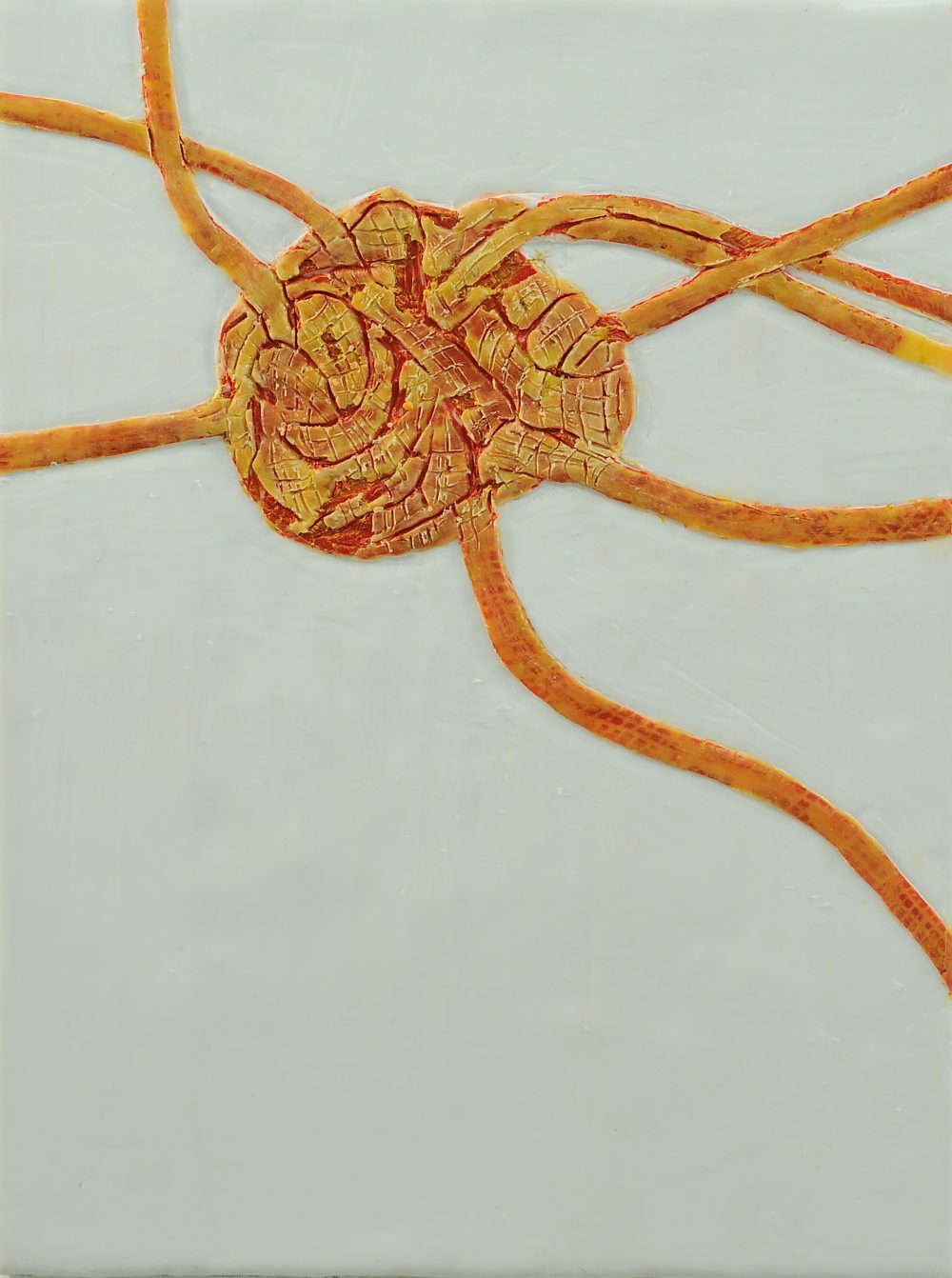 Knoten lösen 4, Paraffin und Acryl auf Nessel, 40 x 30 cm