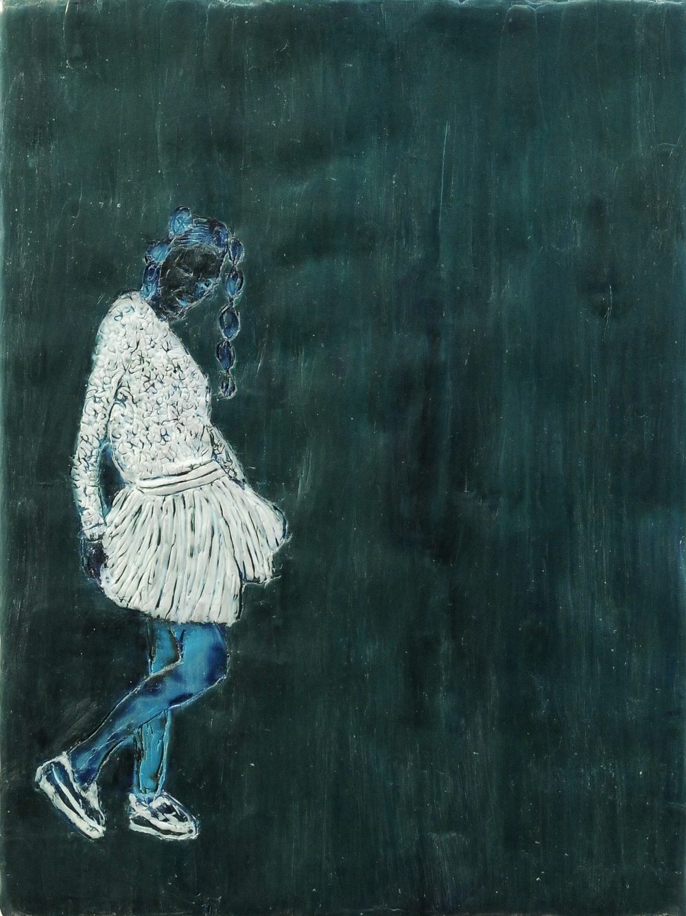 Knoten lösen 5, Paraffin und Acryl auf Nessel, 40 x 30 cm