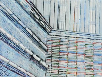 Chroniken 15, Paraffin und Acryl auf Holz, 24,5 x 32 cm